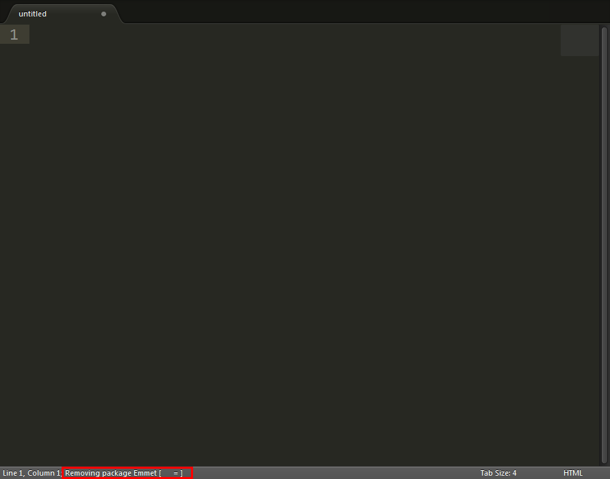するとウィンドウ最下部に「Removing Package Emmet」と表示されますので、=の動きが終わるまで待ちます。完了後は、一度SublimeText2を再起動します。
